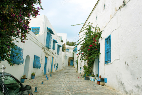 tunisia, street, travel, old, traditional, door, tunis, blue, style, building, sunlight, decoration, stone, gate, flower, culture, carved, architecture, colours, sky, detail, arabic, home, entry, doorway, town, front door, white, north, ornament, old-fashioned, urban, parking, entrance, africa, scooter, village, vehicle, bike, moped, transport, window, front, wall, retro, motorcycle, motor, african, city