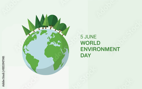 A stylized illustration of Earth with numerous green trees growing on its top surface alongside World Environment Day text