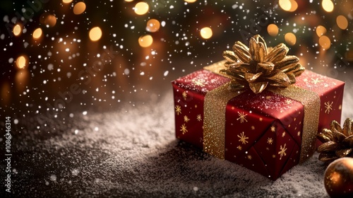 gift, present, box, red, gold, bow, celebration, surprise, festive, holiday, decoration, joyful, wrapping, shiny, luxury, occasion, style, cardboard box, cheer, season, adornment, treat, wrapped, tradition, happiness, colours, daytime, background, banner, poster, christmas, new, year, 2025, ornament