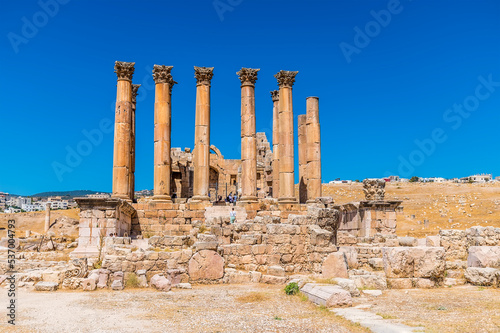 A view over the Temple of Artemis in the ancient Roman settlement of Gerasa in Jerash, Jordan in summertime