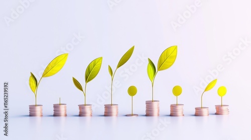 A visual representation of growth, featuring green plants emerging from coins, symbolizing financial prosperity and sustainable investment.