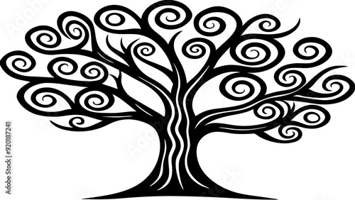 A whimsical tree with exaggerated, leaves silhouette art illustration