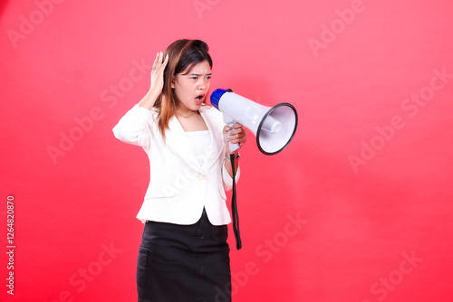 loud, notice, voice, selling, speaker, talk, announcement, formal, news, offer, promotion, sound, public, advertisement, suit, lady, shout, message, sale, woman, advertising, commercial, discount, information, indoor, broadcast, megaphone, yell, audio, indonesia, person, attention, calling, skirt, studio, clothing, isolated, loudspeaker, female, holding, woman, young, girl, adult, banner, equipment, blazer, background, asian
