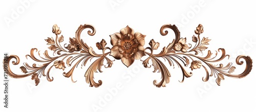 A wooden decoration featuring intricate patterns of leaves and flowers on a white background, showcasing a mix of art and nature-inspired motifs.