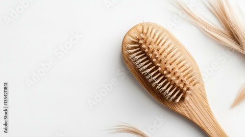 A wooden hairbrush on a clean white surface, perfect for hair care and beauty-themed projects.