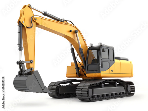shoveling, yellow, grey, bucket, tread, isolated, white background, studio shot, construction equipment, heavy machinery, vehicle, machine, engineering, industrial, equipment, mechanical, design, technology, transportation, crawler, track, digging, heavy, power, hydraulic, arm, boom, cab, track, machinery, construction, industry, work, tool, site, ground, development, project, build, dig, job, transport, moving, object, cut-out, rendering, illustration, closeup