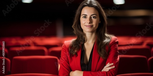 woman, chair, hall, red, empty, business, seat, chair, cinema, theatre, audience, seat, room, conference, nobody, interior, stadium, seating, watch, spectator, sit, watching, entertaining, showtime, theatre, young, alone, brunette, single, fashion, caucasian, person, adult, 1, lady