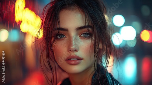 woman, young, beauty, dramatic, city, night, neon, street, portrait, intense, light, expression, face, urban, feature, gaze, atmosphere, lighting, visual, modern, evening, striking, character, style, hair, fashion, model, make-up, glamour, eye, brunette, lip, people, black, make-up, person, long, 1, studio, dark, eye, coiffure, skin, lady, closeup