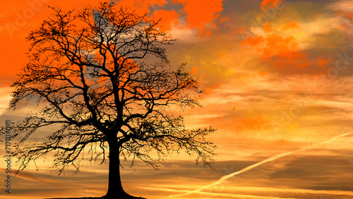 evening scene, sunset, tree, cloud, light, sunset, illustration, paint, nature, countryside