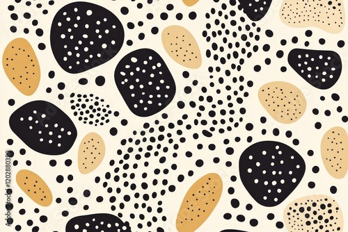 Abstract Artistry: Dynamic Pattern of Rotating Dots and Shapes in Black, Beige, and Cream for Modern Interior and Graphic Design.