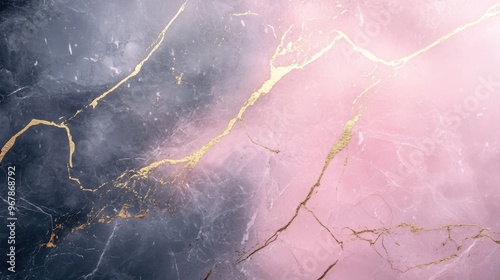 Abstract background featuring marble texture and gold glitter, pink and grey marble background with cracked golden elements.