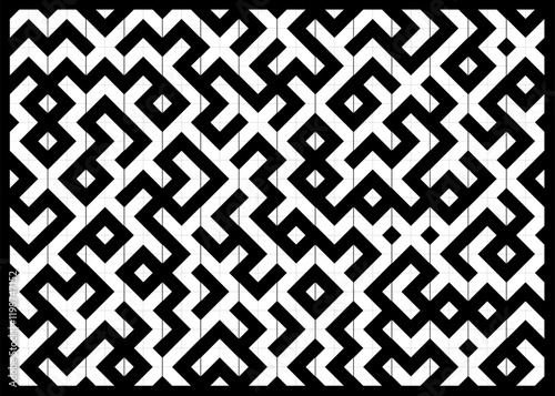 Abstract Black and White Geometric Maze-Like Pattern with Symmetrical Design