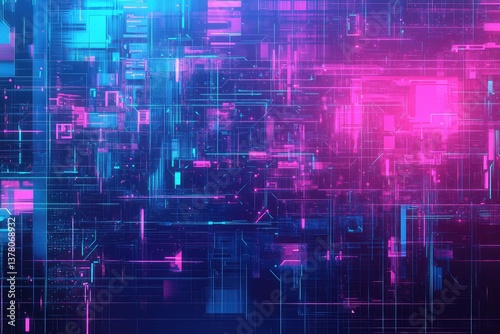 Abstract blue, mint, and pink background with digital glitch and distortion effect. AI generated illustration