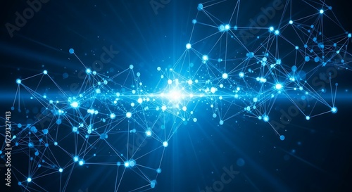 Abstract Blue Network of Connected Points and Lines with a Central Light Source