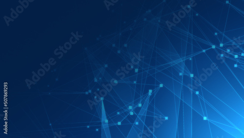 Abstract blue polygon tech network with connect technology background. Abstract dots and lines texture background. 3d rendering.
