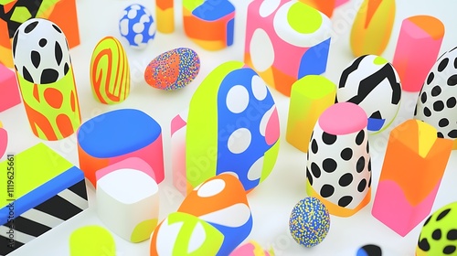 abstract, shape, colourful, object, pattern, design, art, bright, vibrant, background, texture, geometric, illustration, modern, style, white, bold, graphic, playful, dynamic, creative, energy, visual, neon, pink, blue, orange, yellow, green, black, dot, stripes, curve, line, element, composition, surface, rendering, three-dimensional, artwork, contemporary