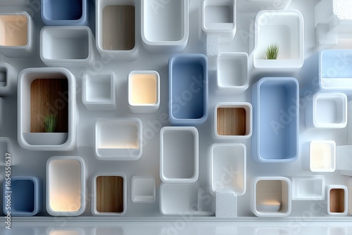 abstract, background, blue, white, rectangle, design, minimalism, creative, composition, shape, interior, geometric, decorative, artistic, block, architectural, texture, lighting, pattern, clean, aesthetic, wall, contrast, colourful, decor, natural, green plant, soft light, modern style, arrangement, display, wooden, balanced, abstract art, interior design, conceptual, style, texture, contemporary, bright, unique, modern art