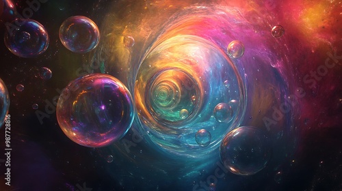 Abstract Cosmic Bubbles with Nebula and Galaxy Background