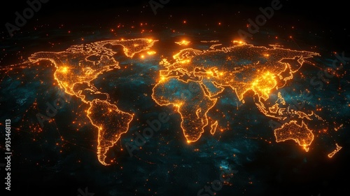 abstract digital artwork depicting global connectivity luminous network of interconnected nodes spanning a stylized world map symbolizing the flow of information and ideas