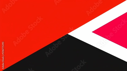 Abstract Flag Design: A visually striking abstract composition featuring a bold flag design, combining vivid red, stark black, and clean white in a geometric arrangement