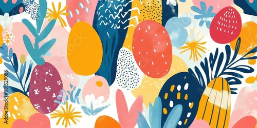 abstract, floral, easter, egg, pattern, design, colourful, vibrant, spring, texture, art, illustration, background, graphic, style, modern, contemporary, whimsical, playful, happy, festive, joyful, bright, bold, organic, shape, form, line, dot, paint, stroke, brush, pastel, colours, white, blue, pink, orange, yellow, red, purple, green, leaf, flower, element, decorative