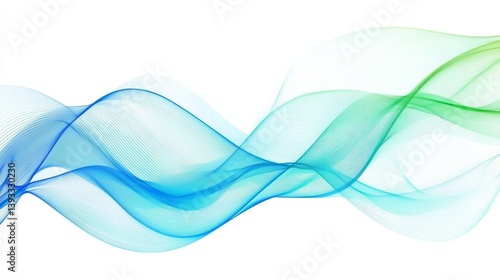 Abstract Flowing Blue Green Waves on White, Background, Texture