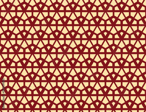 Abstract geometric pattern. A seamless vector background. Golden and red ornament. Graphic modern pattern. Simple lattice graphic design