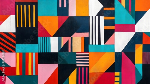 abstract, geometric, pattern, vibrant, colours, colourful, shape, design, art, graphic, background, texture, wall, modern, style, contemporary, minimal, simple, bold, line, contrasting, eye-catching, bright, high-coloured, trendy, decorative, seamless, repeating, digital, illustration, vector, graphic design, abstract art