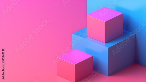 three-dimensional, geometric, shape, rendering, pink, blue, abstract, background, design, minimalism, colours, gradient, illustration, art, graphic, digital, modern, simple, style, texture, pattern, cube, block