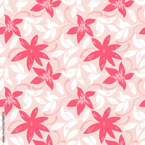 Abstract hand drawn seamless pattern of floral ornament flowers, leaves, branches, curls, flowing lines. Decorative vector illustration for greeting card, invitation, wallpaper, wrapping paper, fabric