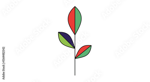 Abstract illustration of a plant stem with leaves split into colorful sections representing nature growth and diversity