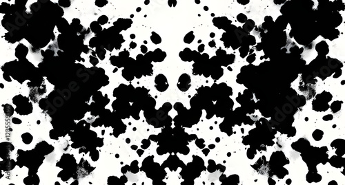 Abstract inkblot Rorschach test background. Random symmetrical black shapes forming illusions