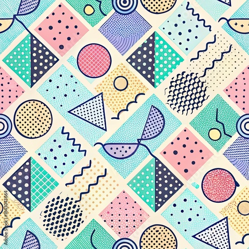 seamless, memphis, abstract, pattern, geometric, shape, dot, squiggle, pastel, background, texture, retro, vintage, 80s, 90s, graphic, design, colourful, modern, illustration, wallpaper, textile, vibrant, playful, doodle, hand-drawn, triangle, circle, square, wavy, repeating, surface, decoration, style, print, layout, contemporary, irregular, minimalist, cream, water, pink, yellow, colours, image
