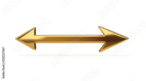 Abstract metallic gold arrow shadow , 3d Golden Arrow Icon on white background , A 3d golden arrow symbol, a illustration of a metal object, represents success in business and finance