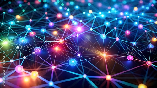 network, abstract, glowing, node, connection, line, vibrant, neon, colours, datum, technology, connectivity, digital, universe, science, futuristic, communication, information, web, cyberspace, global, system, structure, design, pattern, energy, light, glow, sparkle, bright, illumination, blur, bokeh, modern, complex, interconnected, cyber, tech, molecular, art, concept, graphic