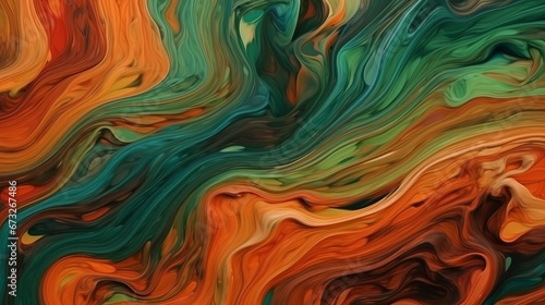 Abstract painted acrylic oil colour 3d texture, overlapping layers of green orange waving waves texture design illustration background. Decor concept. Wallpaper concept. Art concept. 3d concept.