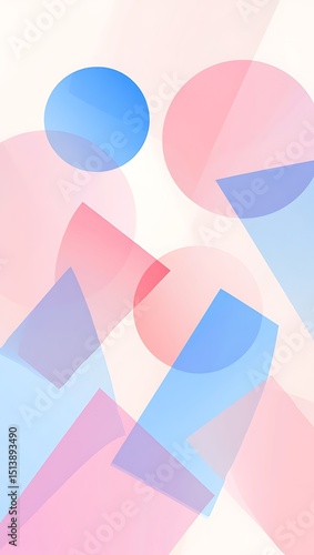 Abstract Pastel Geometric Shapes Pink, Blue, and White Overlapping Circles and Rectangles Background