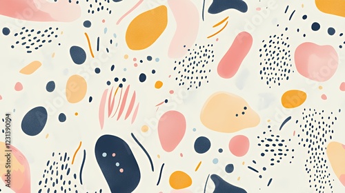 Abstract Pastel Shapes Organic Dots Lines Pattern