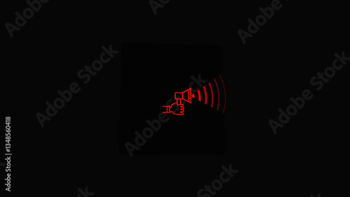 Abstract red hand speaker icon with sound wave. advertisement,conversation,broadcasting ctc are used .animation Concept of megaphone and black background.