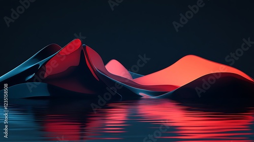 abstract, art, background, blue, colours, dark, design, digital, illustration, image, landscape, mountain, nature, red, rendering, scene, shape, smooth, surface, texture, water, wave, artwork, creative, graphic, modern, pattern, style, vibrant, visual, concept, glossy, neon, curve, hill, deep, shadow, light, glow