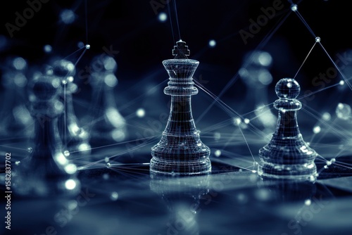 Abstract relationship structure with connected chess elements, authority visualized