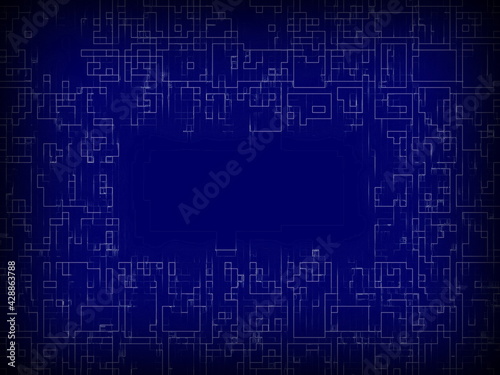 Abstract technology background with circuit board. Stylish fashion image. Creative design of web site layout. Backdrop with blue and white pattern. Cool modern art. Old style dark textured material.