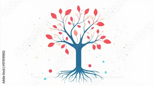 Abstract Tree with Colorful Leaves and Deep Roots - A Symbol of Growth and Nature's Beauty