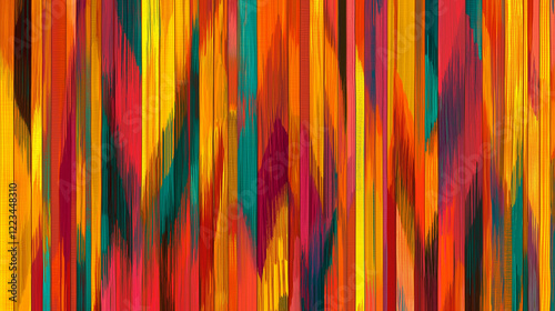 abstract, vibrant, streak, vertical, red, orange, yellow, bold, colourful, artistic, cultural, geometric, contemporary, dynamic, decorative, symmetric, modern art, ethnic, energetic, decoration, unique, ornamental, folk art, expressive, texture, flow, kaleidoscopic, craftsmanship, symbolic, celebration, creative