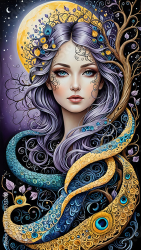 Abstraktion Grazia und Pfau 9х16. Hintergrund für das Design 4.
