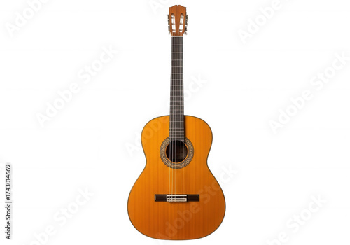 Acoustic guitar with wooden body isolated on a transparent background