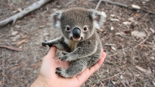 Adorable Baby Koala Sitting Comfortably in Human Hand in Natural Habitat