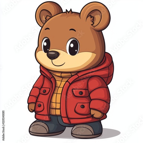 bear, brown, red, coat, winter, adorable, cute, cartoon, illustration, drawing, character, animal, fluffy, warm, jacket, hooded, clothing, fashion, style, happy, smiling, friendly, playful, cuddly, sweet, charming, big, eye, small, paw, leg, shoe, outdoors, cold, snow, ice, fun, joy, cheerful, graphic, design, art, image