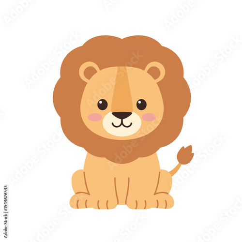 Adorable Cartoon Lion Sitting Smiling with a Fluffy Mane.