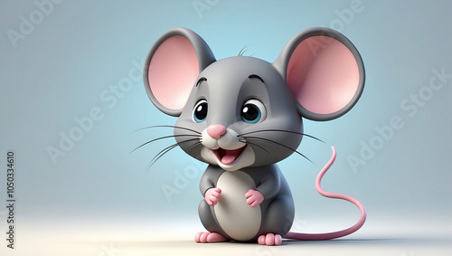 mouse, cartoon, cute, animal, rodent, character, happy, smile, ear, fluffy, playful, friendly, funny, illustration, three-dimensional, render, design, graphic, mascot, whimsical, sweet, adorable, charming, cheerful, joyful, innocent, small, tiny, baby, pet, wildlife, nature, grey, pink, white, background, isolated, studio, image, vector, digital, art, icon, logotype, symbol